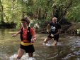 Dans la campagne brétilienne, une jolie course nature avec des traversées de rivière surveillée par des crocodiles gonflables.